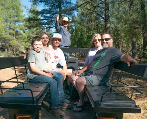 Looking for an activity the whole family can enjoy? Our rides are designed for all ages and skill levels. The ½ Hour Little Buckaroo Ride is perfect for kids under 6 years old, offering a safe, guided experience with gentle, family raised horses. Our horses have been bred specifically for this purpose and they LOVE people. For families wanting a longer adventure, the 1 to 2-Hour trail ride provides a relaxed pace through the scenic trails of the Kaibab National Forest. No riding experience is needed—our wranglers ensure everyone feels comfortable. Bring your family to create memories that will last a lifetime!