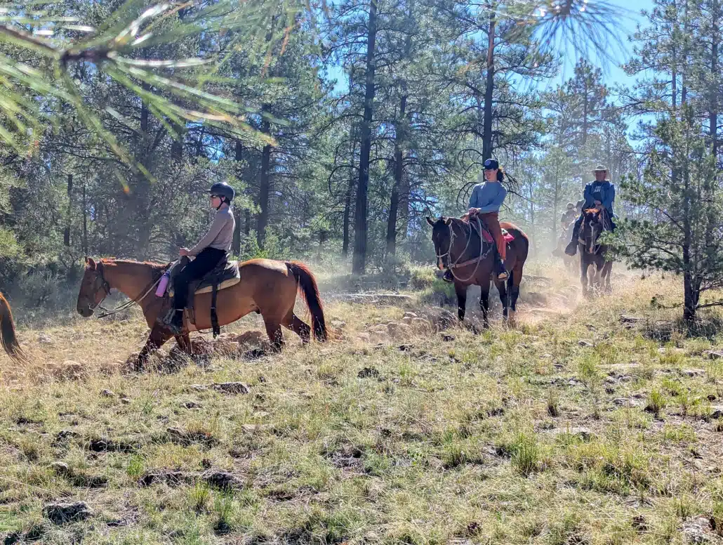 Closed-toe shoes are required for all riders—no sandals or flip flops. Long pants are recommended for comfort in the saddle. Layers are smart in the morning and evening when temperatures can drop. Sunscreen and a hat are always a good idea.